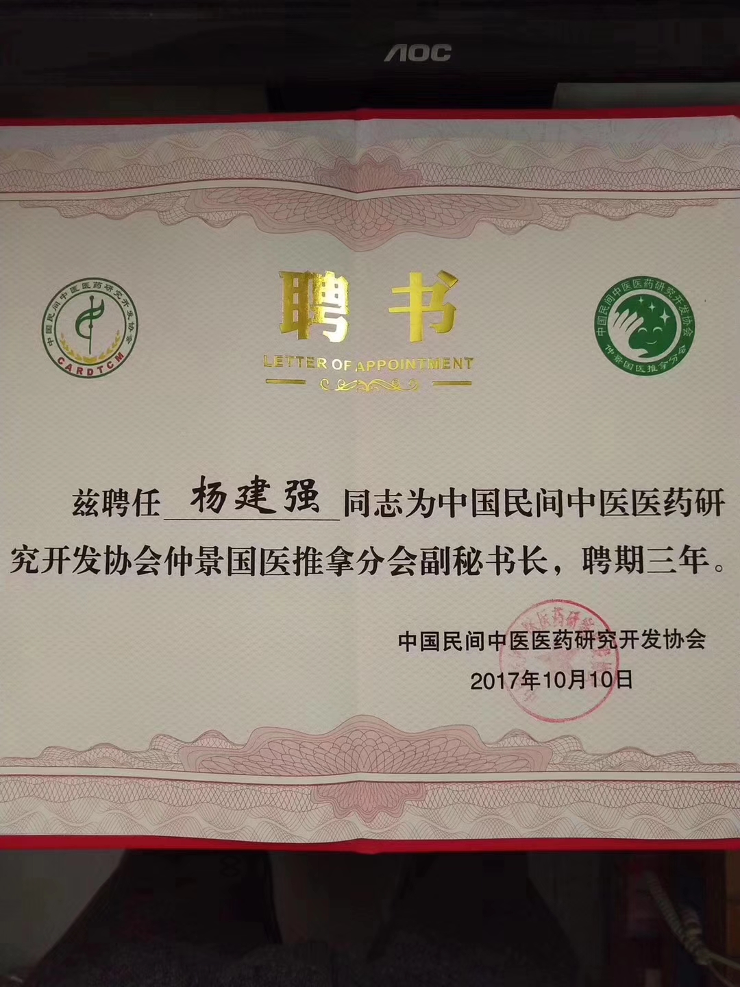 中国民间中医药协会仲景国医推拿分会副秘书长