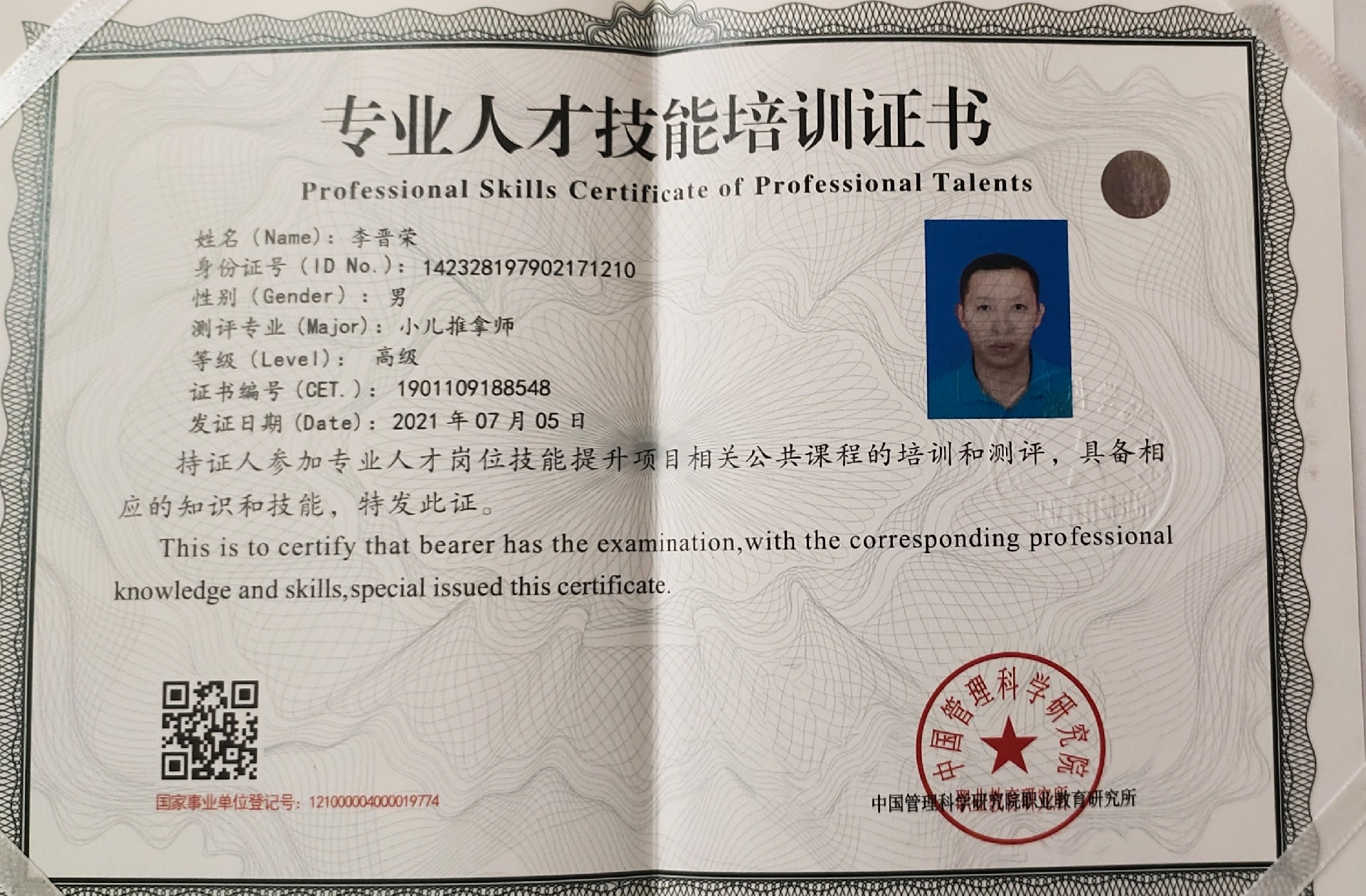 中医高级小儿推拿师(师资)