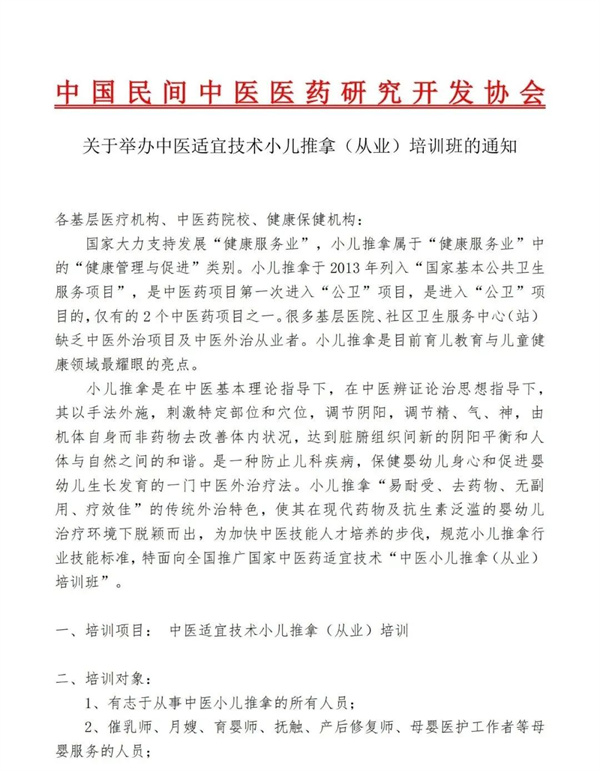 中国民间中医医药研究开发协会仲景国医推拿分会